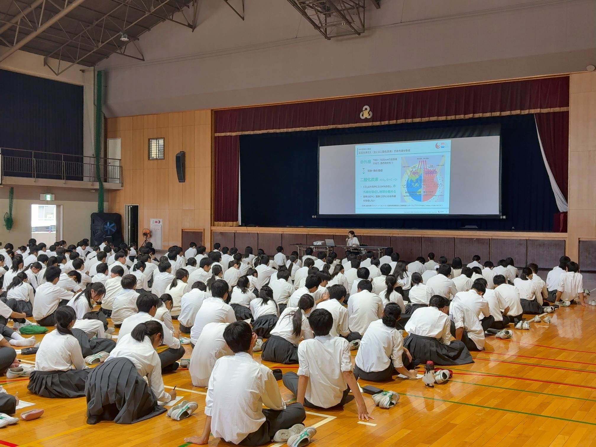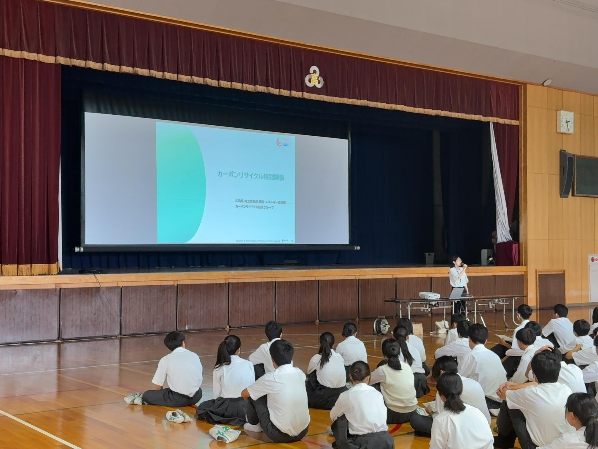 将来的な、カーボンリサイクル関連技術の研究・開発等を担う人材育成に向け、広島県立安芸南高等学校の1年生全員を対象に、カーボン・サーキュラー・エコノミーを学ぶ特別授業を開催しました。