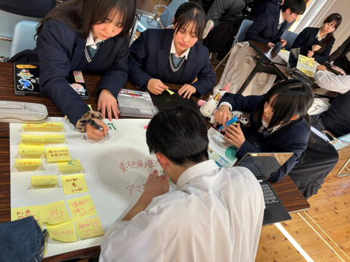 大崎上島町は、「カーボンリサイクル実証研究拠点」が立地する場所であり、その地元の高校生に対して、カーボンリサイクルの概要や意義を伝える貴重な機会となりました。グループワークでは、高校生ならではの視点で、CO₂の利用アイデアや社会実装の方法について話し合いが行われ、その柔軟な発想や思考力に関心させられました。こうした、将来的なカーボンリサイクル関連技術の研究・開発等を担う次世代との交流にご興味のある方がいらっしゃいましたら、ぜひ事務局までご相談ください!